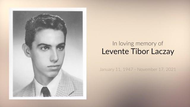 Tibor Laczay January 11, 1947 - November 17, 2021"Every man's life ends the same way. It is only the details of how he lived and how he died that distinguished one man from another." ~Ernest Hemingway Service ProgramWelcome: Rev. Katherine RevoirOpening Reflection History of Tibor’s lifeSlide ShowSharing of Memories Reading: One at Rest, by A J StanleyTeachingGuided Meditation Irish BlessingClosing ReflectionReception to follow